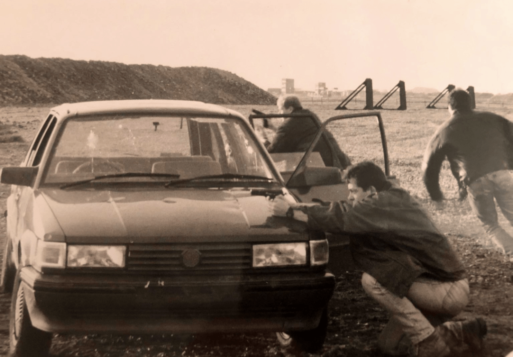 Later I had the barrel reduced to 18″the minimum legal length in UK at time. Added a folding stock, and the thing fitted on your lap. When we had the IRA shootings in Germany I went to police and asked if i could get a Waffenschein a German firearms carry license. They were actually quite sympathetic. If you get a letter from your CO they said which realistically was nil. I lived off camp at the time in a non married quarter area so was an easy target. So I simply drew my private weapons out from the armoury and ‘transported ‘ them every day. This included the pump action and a few times guys from troop would get into the car and I’d tell them there’s a sport holdall for emergencies on the floor. Legally I was not on right side of law but as they say in the Wild West better judged by 12 than carried by 6!