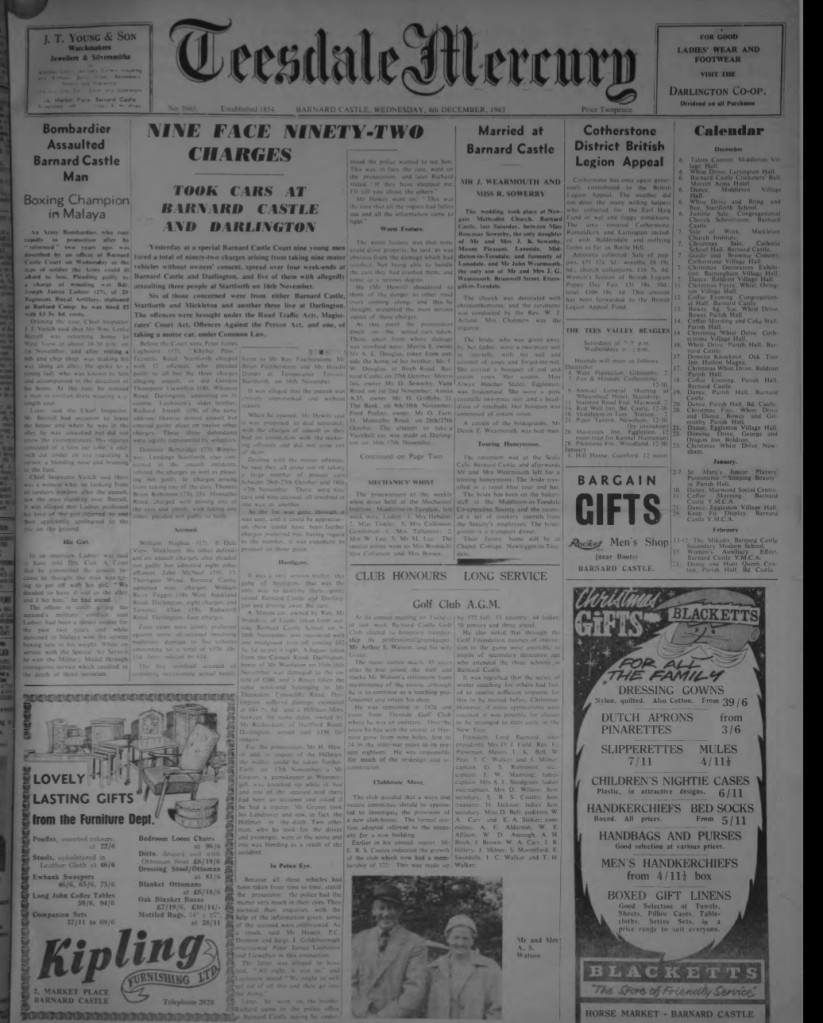 On return from Malaya Jimmy was posted back to the Gunners and was stationed with 20 Regt RA in Barford Camp near Barnard Castle. His Army ambush training and boxing skills got him into a spot of bother and he made the local paper in December 1963 with the headline “Bombardier Assaulted Barnard Castle Man”.