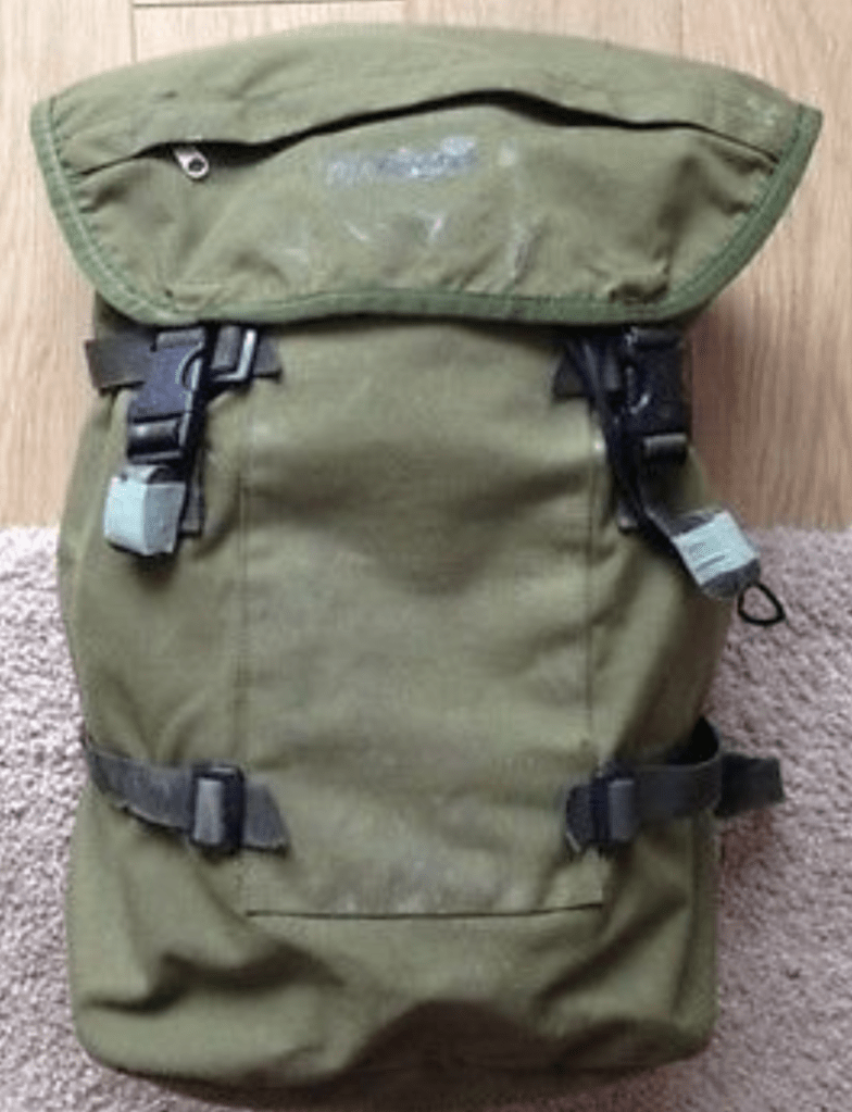 If on patrol then it was carried under the top bergen flap where it could be easily released if you had to abandon it. Back in the 80s daysacks weren’t general issue so were another item you purchased and the Berghaus Munro, still seen today, was a firm favourite.