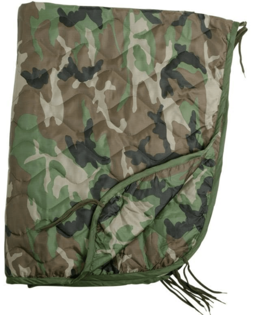 - US Army poncho liner. This was a thin padded blanket designed to be tied into the issued US poncho. A great bit of kit usually obtained when working with the Americans or bought in the PX. Useful in OPs and was great for providing a bit of warmth in a variety of situations.