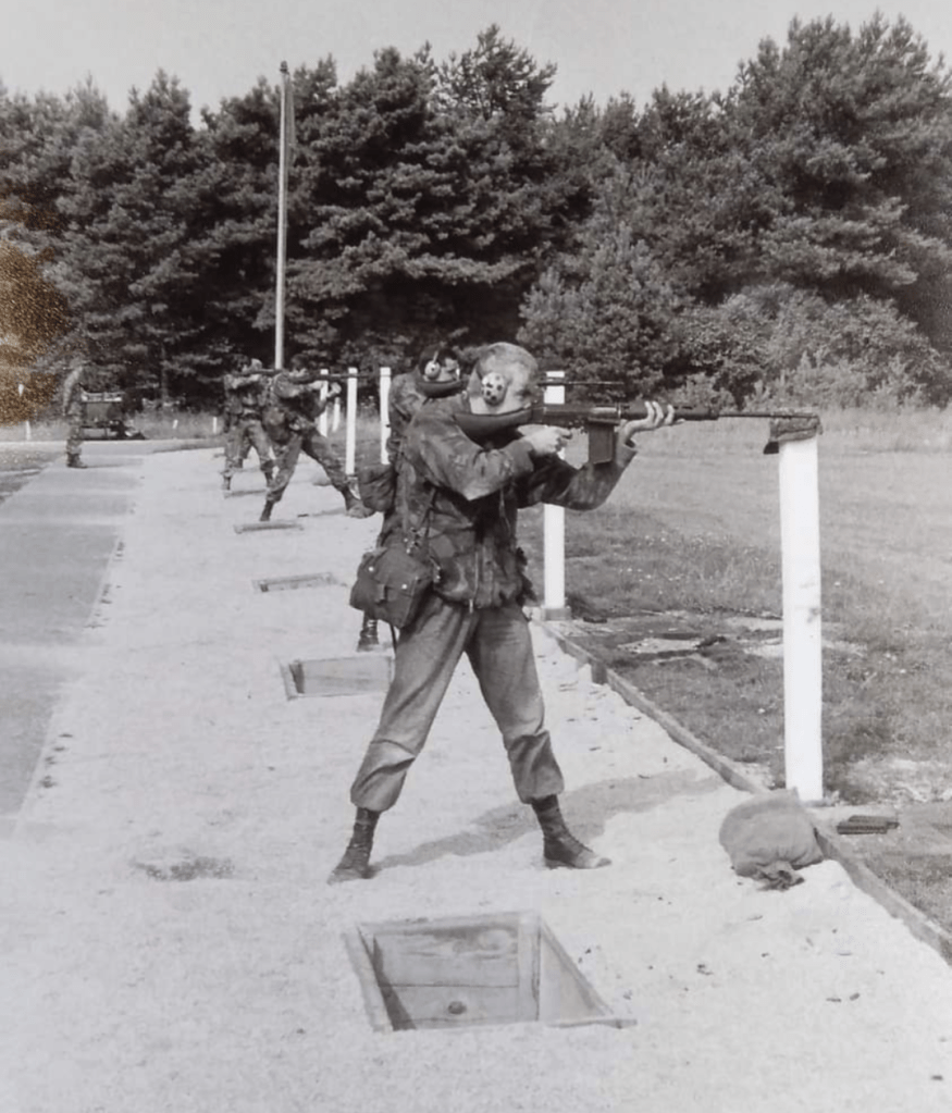 Armalite/M16 variants were issued for jungle training and operations in Northern Ireland and also to SF units like 22 SAS. This weapon would have been a better fit for our job. I once used the folding stock 7.62mm G3 on a ILRRPS CQB course and even that would have been more suitable. But we were stuck with the SLR until the SA80A1 appeared on the scene shorter but also heavy. Not long after we would gladly have had the SLR back but that’s another story.